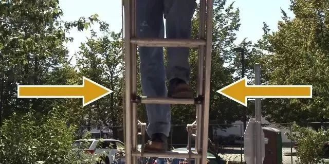 架設人字梯時,要把梯子完全打開,確保鉸鏈完全拉伸。 梯子要放置于堅固平坦的表面,并且確保所有梯腳與地面接觸,確保梯子的踏板和鞋底沒有油或其他易滑物質。