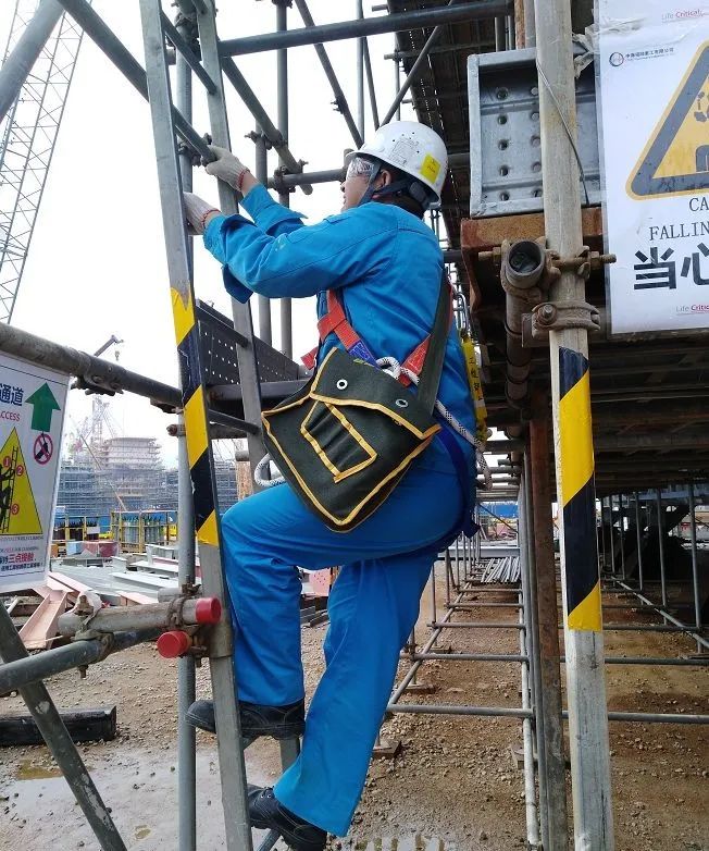 一定要「三點接觸」使用爬梯。 若不可避免須攜帶物件上高,請使用工具背包,或是使用滑輪組將物件吊至高處。 在攀爬梯子時,手里拿著工具材料或文件資料等,這個行為是極其危險的,很容易會單手把持或把持不穩(wěn),造成人員從梯子墜落或物件從高空墜落。